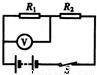 如图,R1=2Ω,R2=3Ω,电压表的示数为1V.求:R2两端的电压和电源电压.