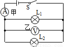 解答:解:由图可知,甲表串联在干路中,所以是电流表;乙表与灯泡并联所以是电压表.如图: