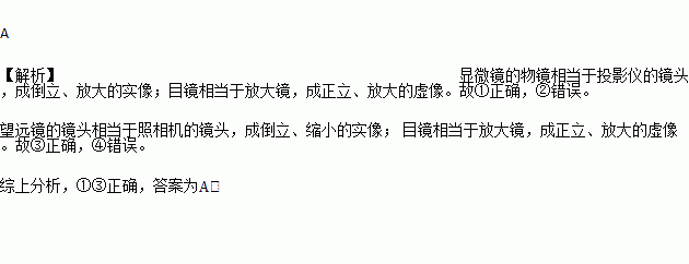 ②显微镜先成缩小的实像,再成放大的虚像;