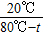 ∴Cm(100℃-20℃-t)=Cm20℃,