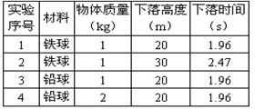 | 实验序号 | 材料 | 质量/㎏ | 下落时间/s |