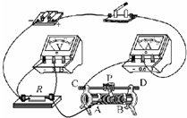 因为当变阻器的滑片向左移动时,电流表示数增大,所以滑动变阻器的电阻应减小,则滑动变阻器应接左边的A接线柱,见下图:![]()