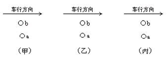 一列火车在平直的轨道上作匀速直线运动,从车厢顶部同一地点先后落下,a、b两个小球,站在路旁的人看来,它在空中的相对位置应是图中的: