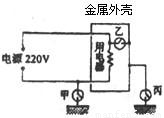 (2006年·浙江绍兴)如图所示,一个带金属外壳的用电器,有甲、乙、丙三个触点(可接通或断开)。使用过程中,当人站在地上,身体一部分接触到金属外壳时,最有可能造成触电事故的是三个触点处于( )