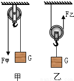 如图(不计绳重与摩擦,且动滑轮重G动小于物重G),用它们分别将重相同的甲、乙两物体匀速提升相同的高度,所用的拉力分别为F甲、F乙,它们的机械效率分别为η甲、η乙。则下列关系正确的是: