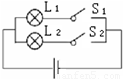 冲洗照片用的“曝光箱”内有红白两个灯泡,箱外有两个开关S1、S2,根据需要,当先闭合S1时只有红灯L1发光,再闭合S2时红灯L1和白灯L2均发光,并且要求在S1闭合前,即使先闭合S2,白灯L2也不发光。下列电路中能够符合上述要求的是 ( )