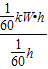 某家用电能表的表盘上标有“600r/kW·h”的字样,在电路中只接入一个用电器且正常工作时,电能表转盘在1min内转了10转,则该用电器的额定功率是(    )