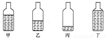由图知:四个瓶子的水位,从低到高分别是:丙、乙、甲、丁,因此对应的四个音阶是:1、2、3、4.
