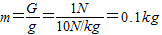 【答案】分析:我们对于重力这个物理量不是很了解的,我们可以根据重力求出质量.由G=mg计算出质量.