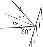 一束光线与平面镜的夹角为60°,则入射角为:90°-60°=30°,根据反射角与入射角的关系,反射角也为30°,
