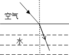 (3)首先作出法线,然后根据光由空气斜射进入水中时,折射光线向靠近法线方向偏折,折射角小于入射角作出折射光线,如下图所示:![]()