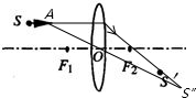 2与S′连线方向远离透镜移动到S″.如图所示: