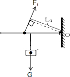 过动力臂L1的末端做垂直于动力臂的作用力即动力F1,要是杠杆平衡,方向应该向上;如图所示:![]()