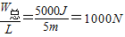 若斜面光滑,则没有额外功,即推力的功W=5000J
