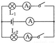 解答:解:由图可知:L1和L2是并联关系,而且电流表A在干路中,电流表A1测量L1的电流;电流表A2测量L2的电流;
