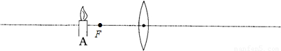 如图,蜡烛置于凸透镜前某点A时,在凸透镜的另一侧光屏上可以获得清晰倒立、放大的实像,试在主光轴上标出该凸透镜焦点F的大致位置.