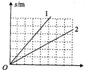用测力计两次拉动重为G的物体竖直向上运动,两次运动的s一t的图象如图所示,其对应的测力计示数分别为F1、F2,则F1和F2的大小关系是( )