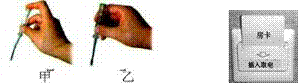 如图甲乙所示的仪器是用来区分 的。现在许多宾馆都利用房卡取电,如图所示.只有把房卡插入槽中,房间内的用电器才能使用.房卡的作用相当于家庭电路中的 。