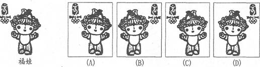 下面方框中的四个图像,其中一个是福娃在竖直放置的平面镜中的像,你认为应当