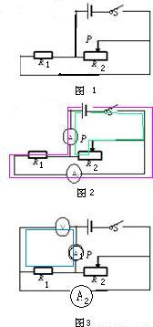 (3)如图2.红线代表R1的电流路径,绿线代表R2的电流路径.电流表A1测量干路电流,电流表A2测量R1的电流.R1两端的电压不变,电阻不变,电流I1不变,所以电流表A2示数不变.滑片右移,R2电阻增大,电压不变,根据欧姆定律电流I2变小,电流表A1测量干路电流,I=I1+I2,示数变小.