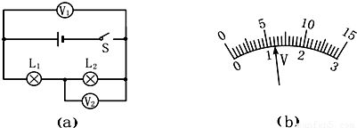 (2)电压表V1的量程是0~15V,其分度值是0.5V,示数为6V;电压表V2的量程是0~3V,其分度值是0.1V,示数为1.2V;根据串联电路电压的特点可知,电灯L1两端的电压为:U1=6V-1.2V=4.8V.