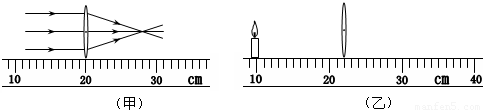 (2011?怀柔区一模)跟凸透镜主光轴平行的光线经过透镜后会聚的情形如图(甲)所示.若将一烛焰放在此凸透镜左侧如图(乙)所示的位置,则在透镜的
