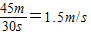 一物体做匀速直线运动,当它通过45m的路程时用了30s的时间,那么它前15s内的速度为( )