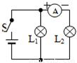 在如图所示中,要用电流表测小灯泡中的电流,估计小灯泡中的电流是0.3A左右,则接线柱a应接电流表的________接线柱,接线柱b应接电流表的________接线柱.