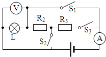 当闭合开关S3,断开开关S1、S2时,等效电路如图(3)