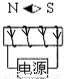 解答:解:由于小磁针静止时,其左端为N极,则螺线管的左端为S极,右端为N极.根据右手定则,伸出右手,让右手的大拇指指示螺线管的N极(螺线管的右端),四指弯曲所指的方向为电流的方向.所以,电流由最左端的导线流入,如图所示:
