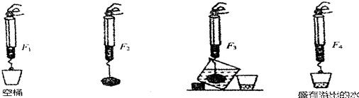 四步实验中弹簧测力计的示数F1、F2、F3、F4之间的大小关系是 ( )