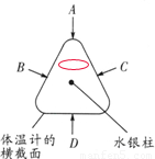 四位同学在测量自己的体温后,分别沿图中的A、B、C、D方向观察读数,则哪个方向观察易于读数( )