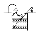 如图所示,某人站在岸上应该向水面哪一点看,才能看到对岸路灯的像?作出光路图。