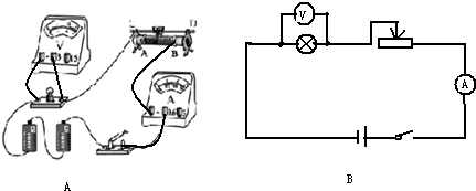 解答 解:(1)根据题意可知,电压表并联在小灯泡两端,电流表串联在电路中,滑动变阻器串联在电路中,接线一上一下,电路连接如图A所示,并画出电路图如下图B:![]()