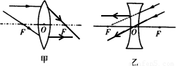 画出如图甲、乙中入射光线通过透镜后的折射光线.