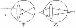 | A.甲是近视眼,应戴凸透镜眼镜;乙是远视眼,应戴凹透镜眼镜 |
