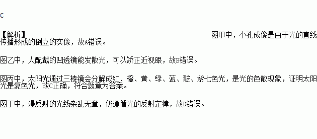 D. 图丁中,漫反射的光线杂乱无章不遵循光的反射定律