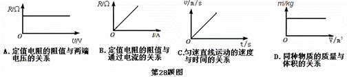 下列图像中,能正确反映同种物质的质量和体积关系的是 (  )