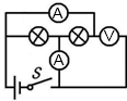 (2)根据题意可知,两灯泡并联;即电流从电源正极开始分支,一路经过左边灯泡,另一路经过上面的圈和右边,然后两路汇合共同经过下面圈回到电源负极,故上边和下边圈内都为电流表,右边圈中为电压表.如下图所示:![]()