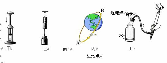 C.丙图中,人造地球卫星从A点运动到B点时将势能转化为动能