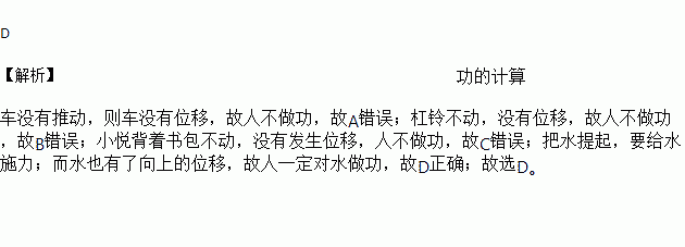 C. 小悦背着书包静立在原地 D. 小翔把一桶水从井中提起