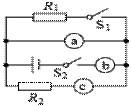 如图所示,a、b、c表示的电流表或电压表.当S1、S2都闭合时,下列正确说法是 ( )