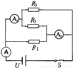 【答案】分析:(1)分析电路图,画出等效电路图如图所示,R1、R2、R3并联,电流表A1测量通过R2、R3的电流之和,电流表A2测量通过R1、R2的电流之和;