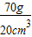 解答:解:右盘砝码质量为50g+20g=70g,故左盘物块质量为70g,左盘物块体积为20cm3