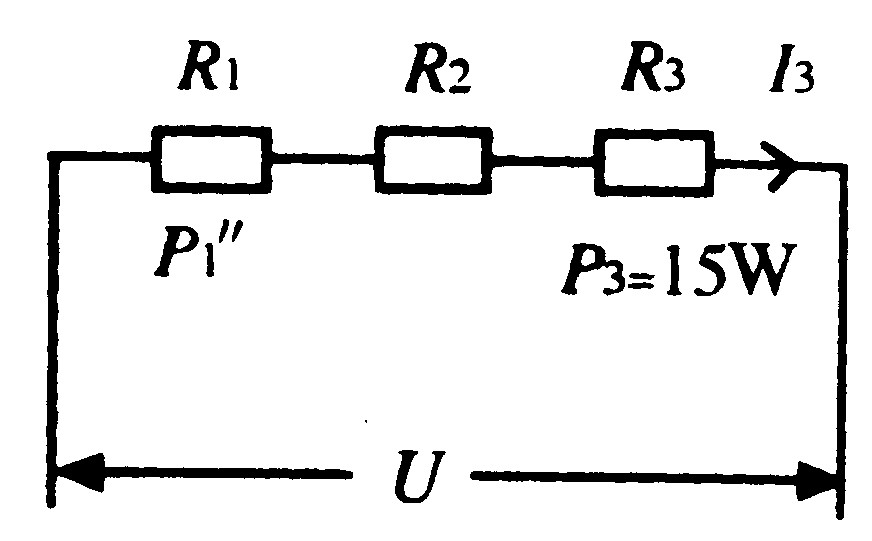 如图2—3—12所示,电路两端电压保持不变,当只闭合开关S1时,通过电阻R1的电流是I1;当只闭合开关S2时,通过电阻R2的电流是I2;电阻R2消耗的功率是20W,I1∶I2=3∶2,当只闭合开关S3时,电阻R3消耗的功率是15W.