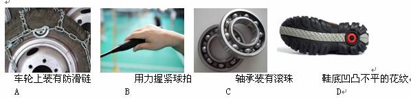 如图所示的四个事例中,目的是为了减小摩擦的是( )