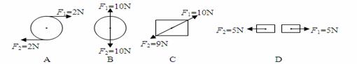 如下图所示,下列物体受到两个力的作用彼此平衡的是
