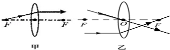 (2)过焦点的光线传播方向不变,平行于主光轴的入射光线经凸透镜折射后通过焦点.如图所示:![]()