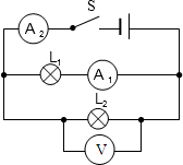 (2)灯L1、L2并联,电流表A2测的是干路上电流,电流表A1测的是L1所在支路的电流;