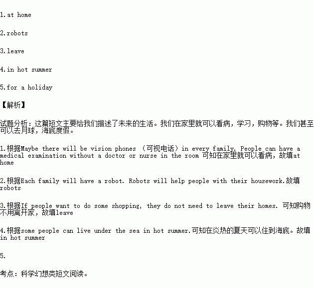 Maybe some people will go to the moon for a holiday and some people can live under the sea in hot summer.